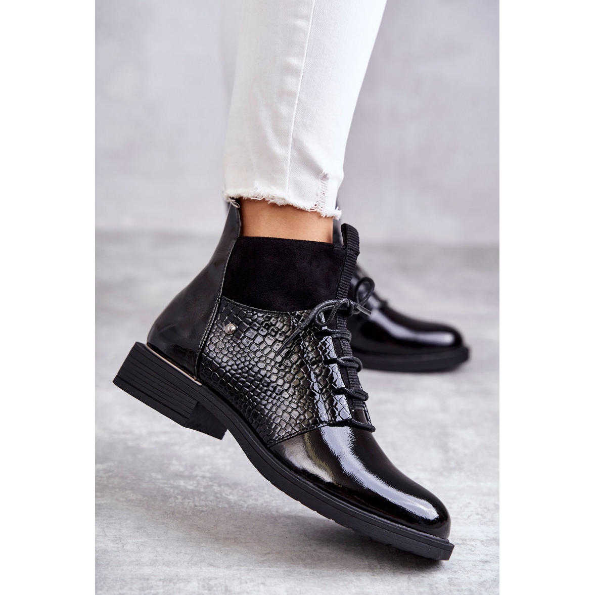 Details: Vinceza Lackierte schwarze warme Schnürstiefel Cathrine