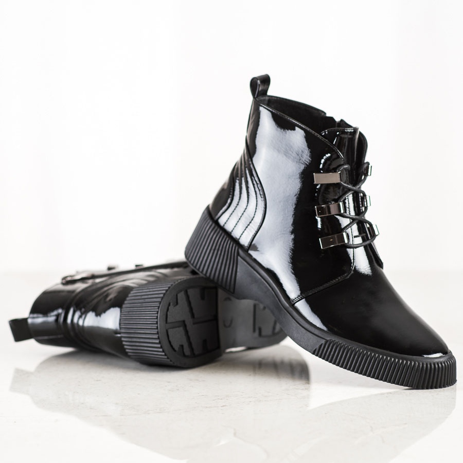 Wir präsentieren lackierte Plateau-Stiefeletten der renommierten Marke S. BARSKI, die die perfekte Wahl für moderne Frauen sind, die Wert auf Stil und Komfort legen. Diese eleganten schwarzen Stiefeletten werden mit Sicherheit die Blicke auf sich ziehen und jedem Styling eine schicke Note verleihen.