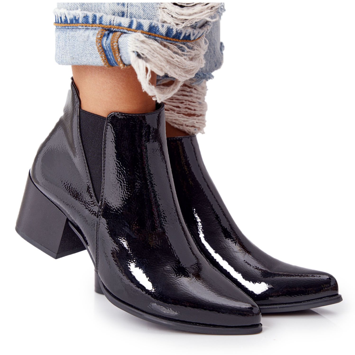 Wir präsentieren elegante und stilvolle Sergio Leone BT153 Stiefeletten mit hohen Absätzen in klassischem Schwarz, die eine perfekte Ergänzung zu jeder Damengarderobe sind. Aus hochwertigem Lackleder gefertigt, fallen diese Stiefel durch ihren Glanz und ihr modisches Design auf.