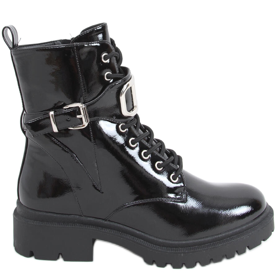Dies sind Mila PATENT(BLACK) Lackstiefeletten – die perfekte Kombination aus Stil, Komfort und Modernität. Diese schwarzen Arbeiterschuhe mit hoher Sohle zeichnen sich durch ihr klassisches Design und die modische Lackierung aus, die für Eleganz sorgt. Die auffällige Silberverzierung zieht die Blicke auf sich und lässt das Ganze ausdrucksstark wirken.