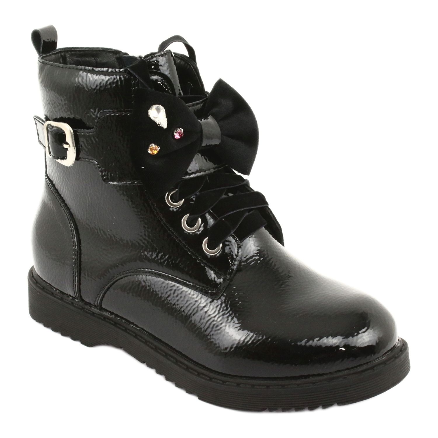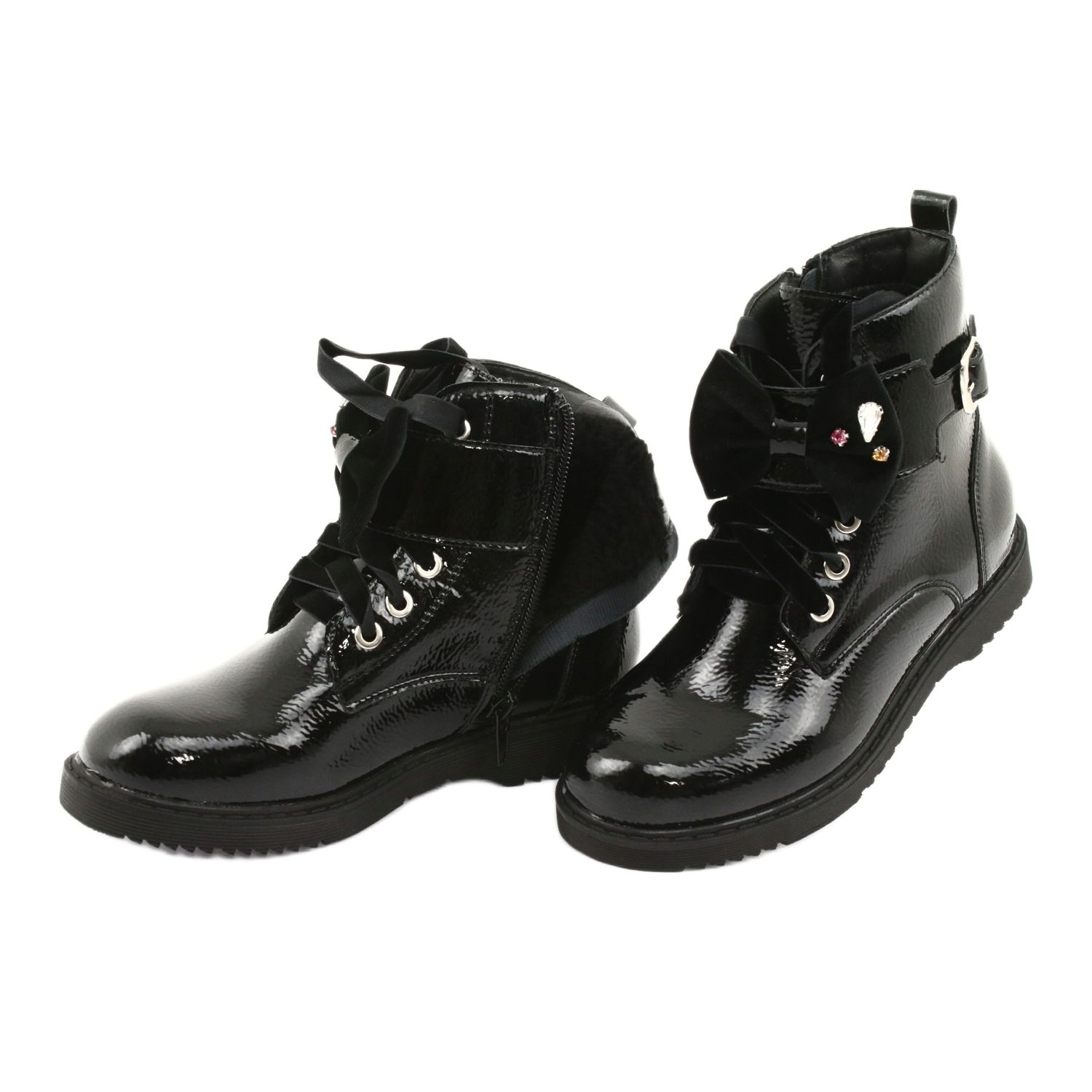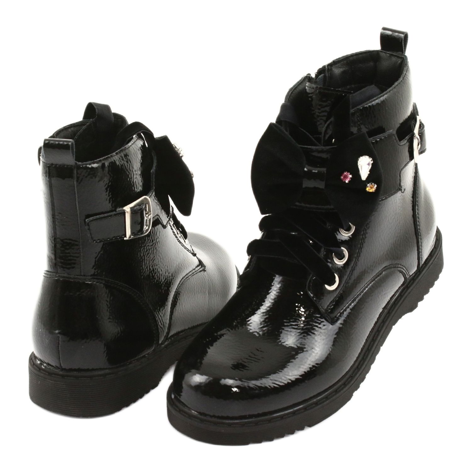 Details: Lackierte Stiefel mit Schleife und Strasssteinen Evento 1432 schwarz
