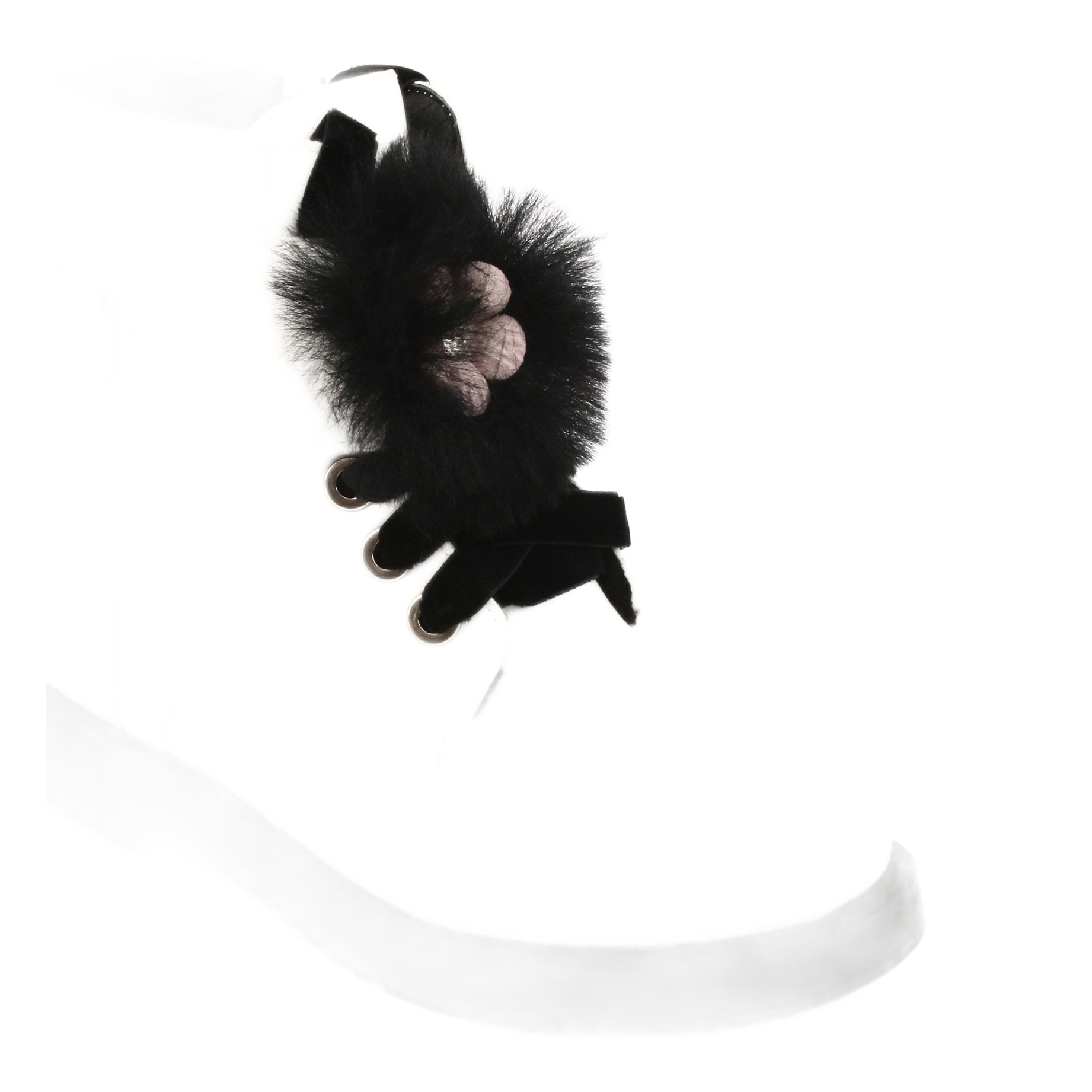 Schwarzes Fell verleiht einen Hauch von Luxus und eine stilvolle, mit Pailletten verzierte Puderblume, die am Gürtel befestigt ist, verleiht dem Ganzen einen mädchenhaften Charakter. Dank des Schnürsystems und des intuitiven Reißverschlusses können auch die jüngsten Modeliebhaber diese eleganten Schuhe anziehen.