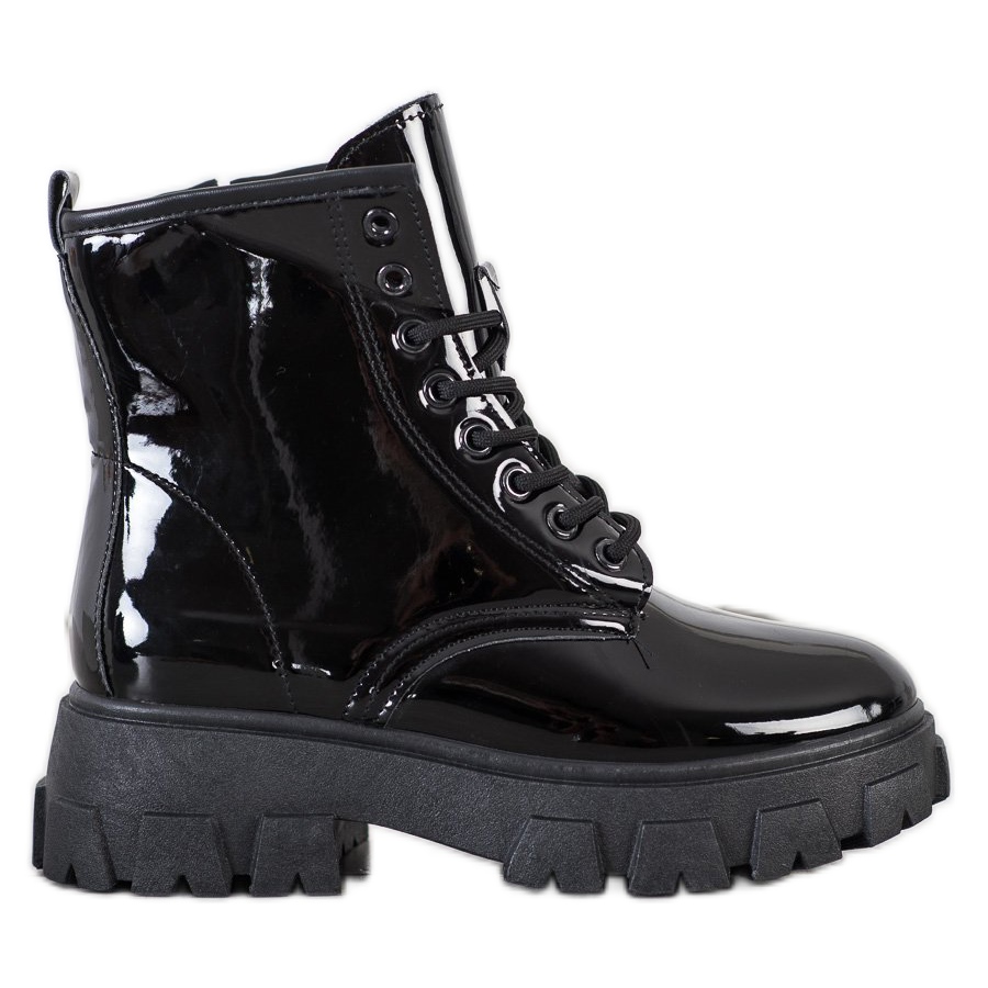 Details: SHELOVET Lackierte Trapper auf der Plattform schwarz