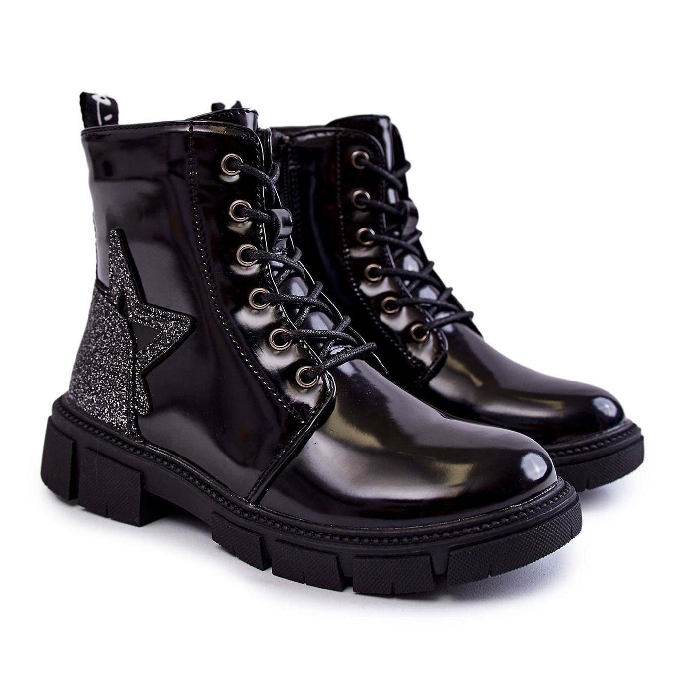 Das schwarze Stiefeletten-Modell zeichnet sich durch eine klassische Schnürung und einen praktischen Reißverschluss an der Seite des Obermaterials aus, der das An- und Ausziehen erleichtert. Die zusätzliche Glitzerverzierung an der Seite verleiht Charme und sorgt dafür, dass sich jedes Mädchen darin besonders fühlt.