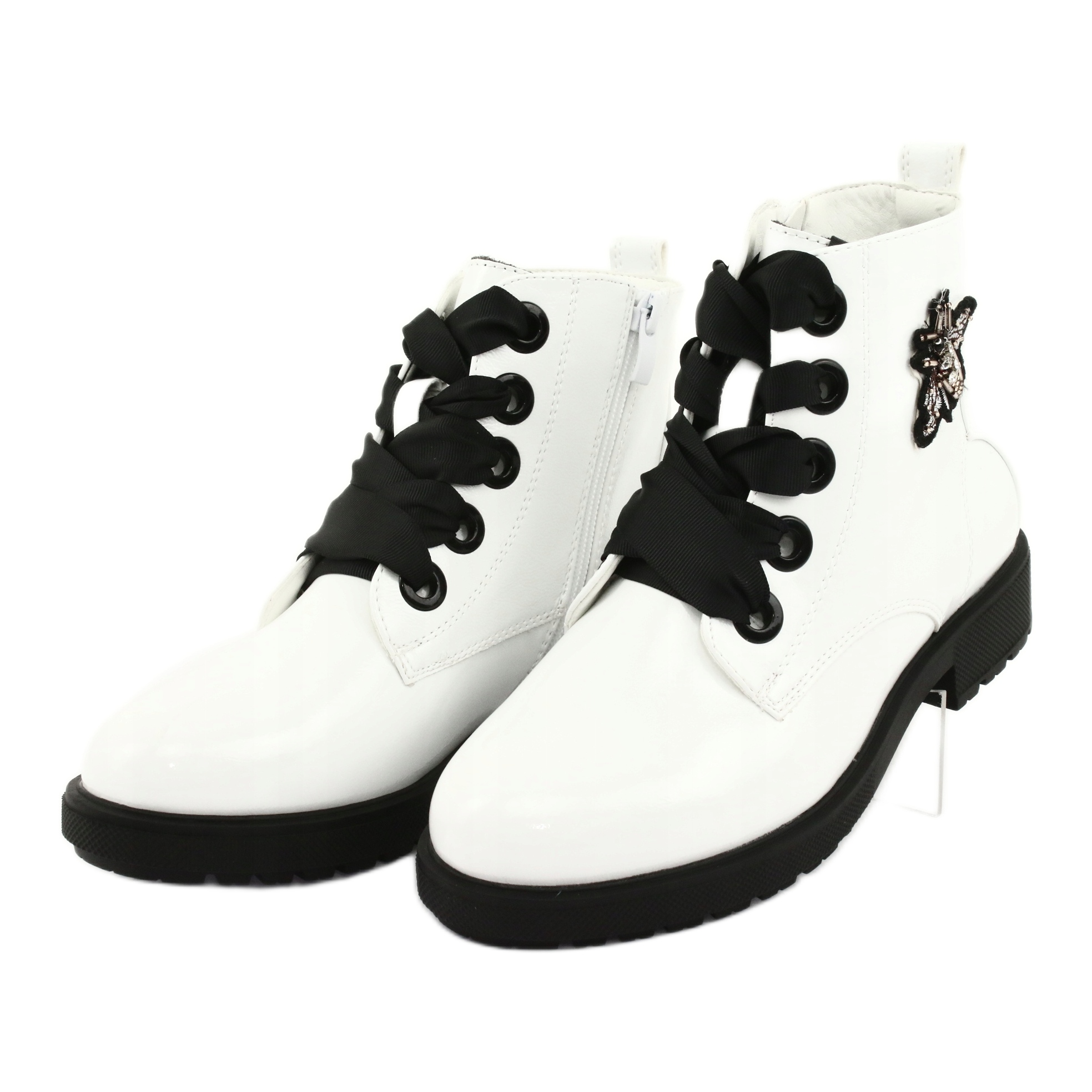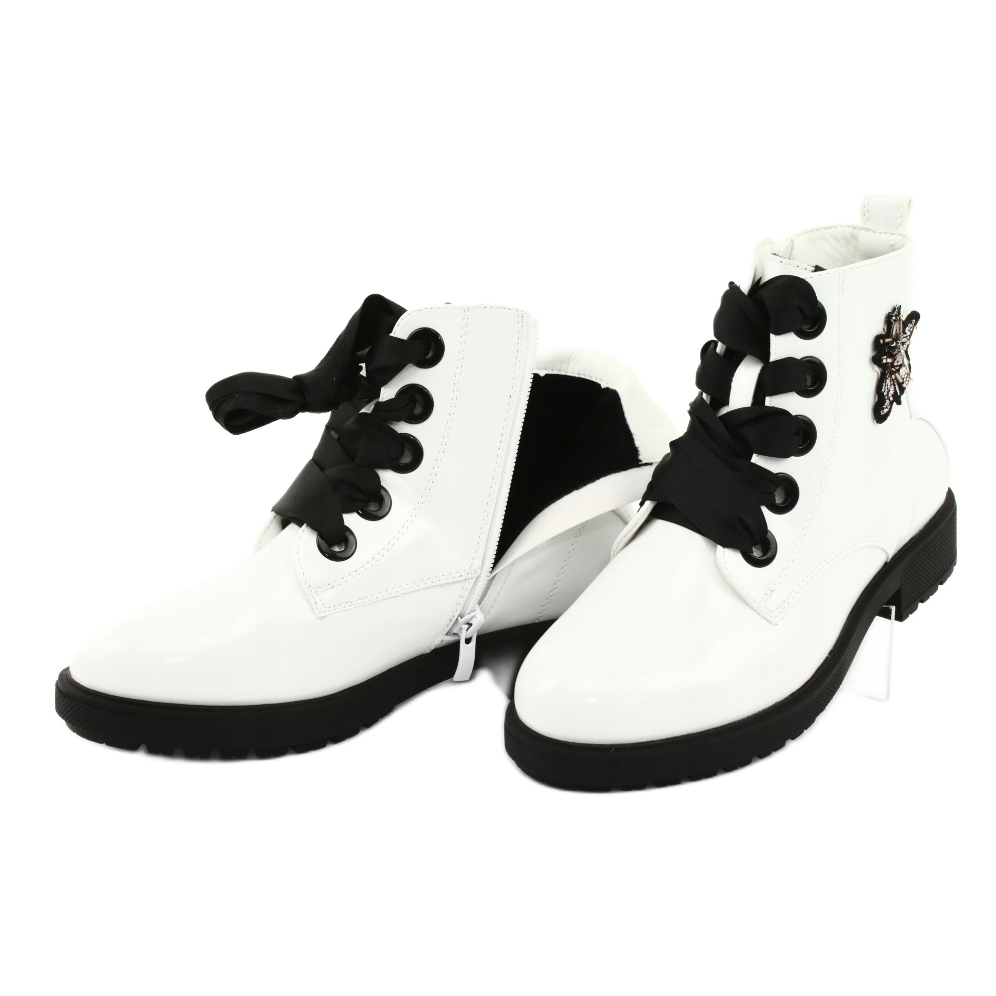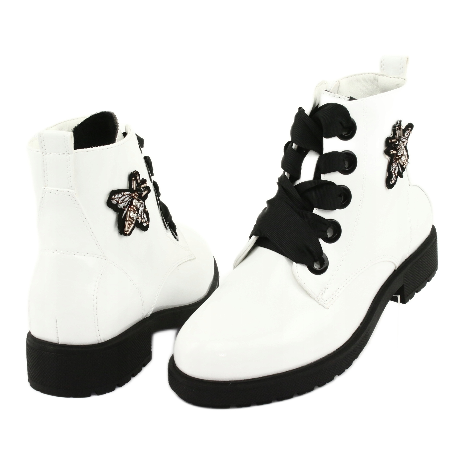 Lackierte Stiefel „Mucha“ Sergio Leone 530 in Weiß und Schwarz sind eine ausgezeichnete Wahl für Frauen, die Wert auf Stil und Komfort legen. Aus hochwertigem ökologischem Lackleder gefertigt, begeistern sie nicht nur durch ihre Ästhetik, sondern auch durch ihre Funktionalität. Dank modischer Details in Form einer stilvollen Fliege und dezenten Strasssteinen und Strasssteinen zieht jeder Schritt in diesen Stiefeln die Blicke auf sich.