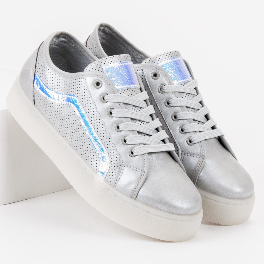 Entdecken Sie einzigartigen Stil und Tragekomfort mit lässigen Damenschuhen von SHELOVET in Grau und Silber. Diese modischen Sportschuhe zeichnen sich durch eine offene Spitze und perforiertes Material aus, das den Füßen freie Atmung ermöglicht, was sie perfekt für wärmere Tage macht.