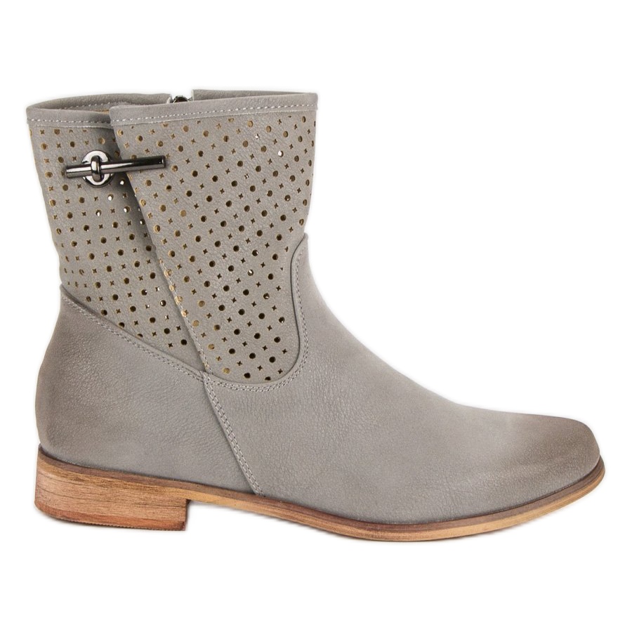 Ihre gedämpfte graue Farbe und die durchbrochenen Details machen diese Stiefel äußerst universell und passen perfekt zu aktuellen Trends. Egal zu welchem Anlass, Sie können sie mit den unterschiedlichsten Stilrichtungen kombinieren, von lässig bis elegant.
