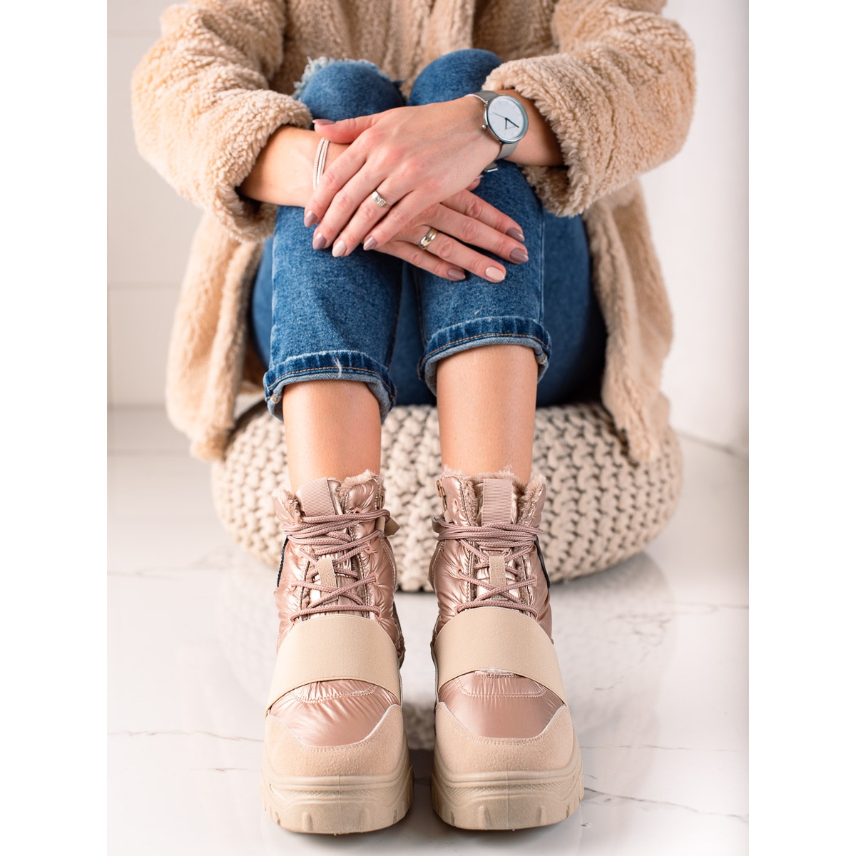 TRENDI-Schneestiefel sind eine ausgezeichnete Wahl für Frauen, die Wert auf einen modischen Look und Alltagskomfort legen. Der Reißverschluss und die Schnürung erleichtern das An- und Ausziehen der Schuhe. Diese beigen Stiefeletten passen zu jedem Winteroutfit, von Jeans bis zu warmen Pullovern.