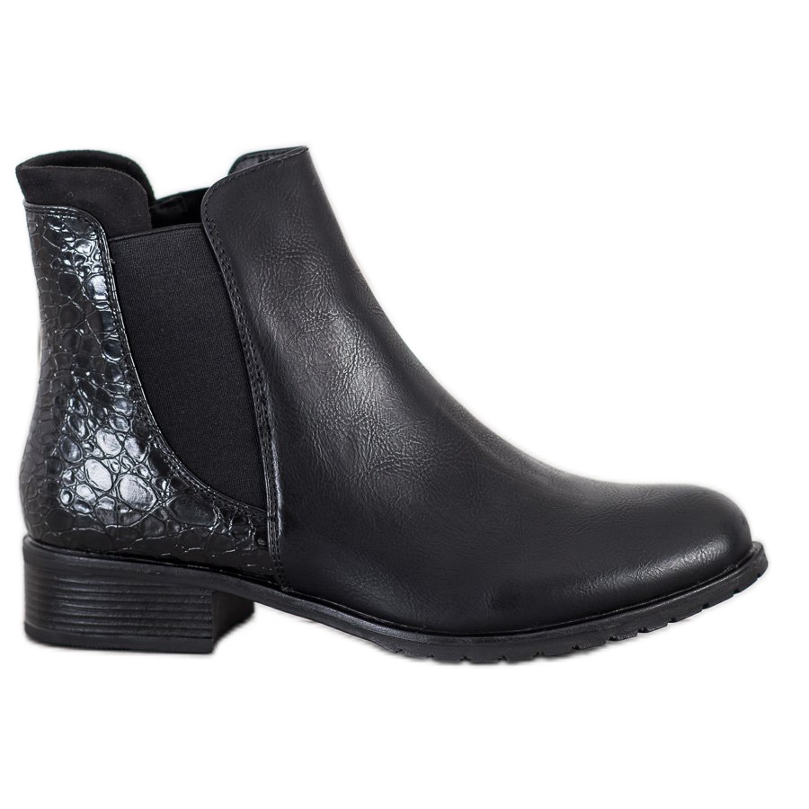 Kayla Casual Ankle Boots mit Schlangenmuster in Schwarz sind die perfekte Wahl für Frauen, die modische und bequeme Alltagsschuhe suchen. Diese eleganten Stiefeletten werden dank des Tiermusters, das ihnen einen einzigartigen Charakter verleiht, sicherlich alle Blicke auf sich ziehen. Sie sind aus ökologischem Leder gefertigt und vereinen Stil mit Umweltschutz.