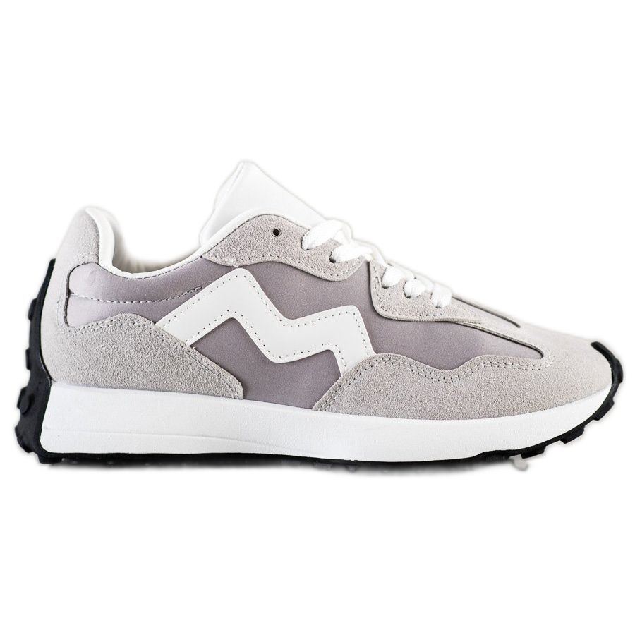 Der graue Farbton der Schuhe in Kombination mit weißen Einsätzen verleiht ihnen einen modernen und frischen Look. Ein hohes Plateau mit einer Höhe von 3 cm sorgt für zusätzlichen Tragekomfort und die profilierte Gummisohle garantiert guten Halt auf verschiedenen Untergründen, sodass sie perfekt für jeden Anlass geeignet sind – vom Spaziergang durch die Stadt bis zum alltäglichen Einsatz.