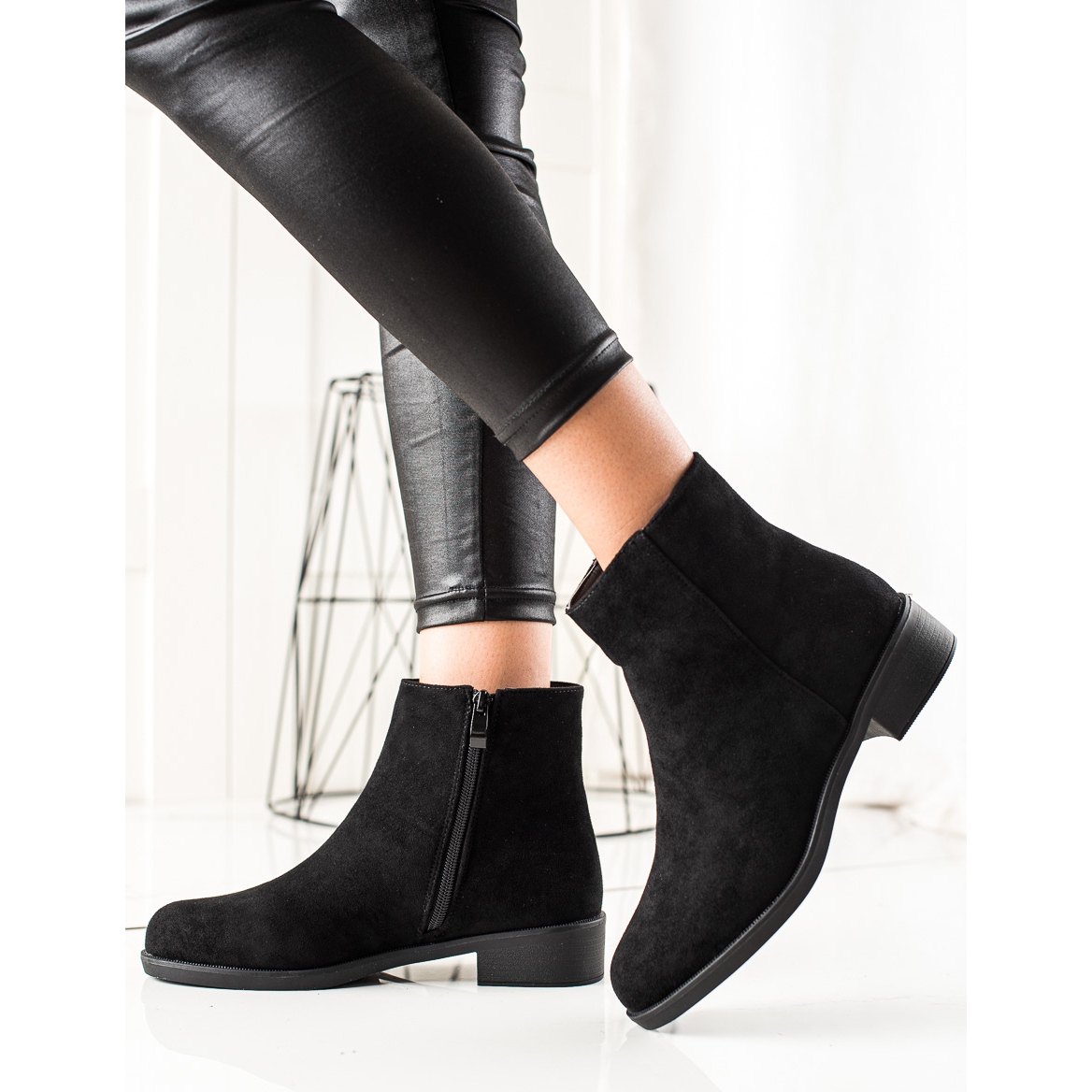Entdecken Sie jederzeit Eleganz und Komfort mit schwarzen Wildleder-Stiefeletten von Ideal Shoes. Diese wunderschönen Damen-Stiefeletten vereinen klassisches Design und lässigen Stil und sind somit perfekt für den täglichen Gebrauch. Sie bestehen aus hochwertigem Wildleder-Ökoleder und bieten nicht nur einen modischen Look, sondern auch Tragekomfort.