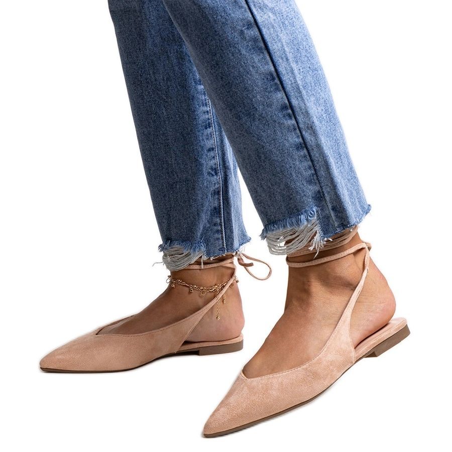 Ballerinas aus weichem, ökologischem Wildleder -Leder sind nicht nur ästhetisch, sondern auch äußerst komfortabel. Dank des Schnürsystems sind sie leicht anzuziehen und zu entfernen, was sie zu einer praktischen Lösung für alltägliche Stilisierungen macht. Beige Farbe passt perfekt zu Sommeroutfits und verleiht ihnen Leichtigkeit und Frische.