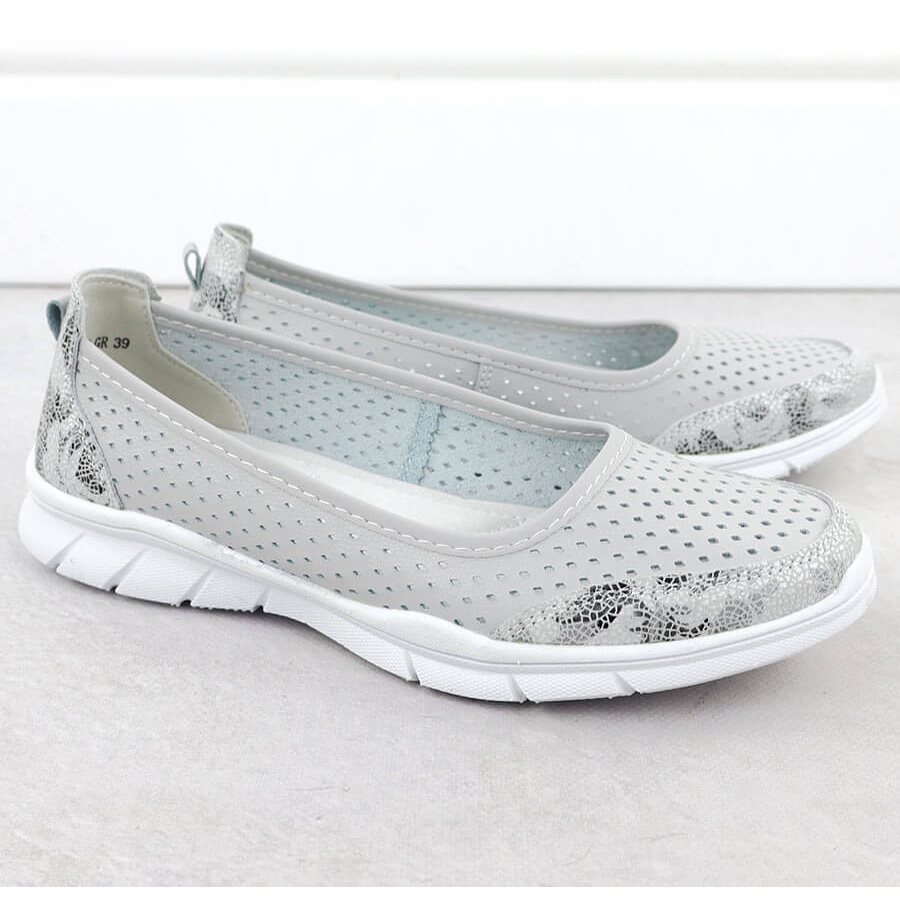 Details: Leder -Ballerinas offener Komfort Grau Vinceza 95323