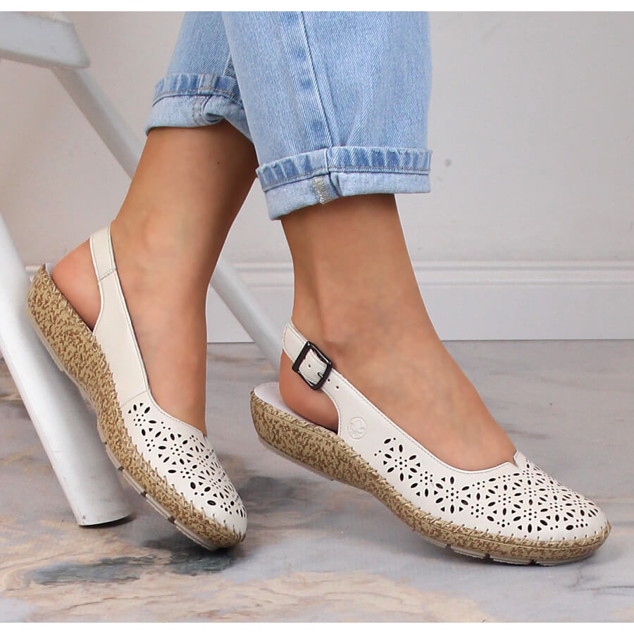 Details: Leder bequeme durchbrochene Sandalen beige Rieker 44861-60