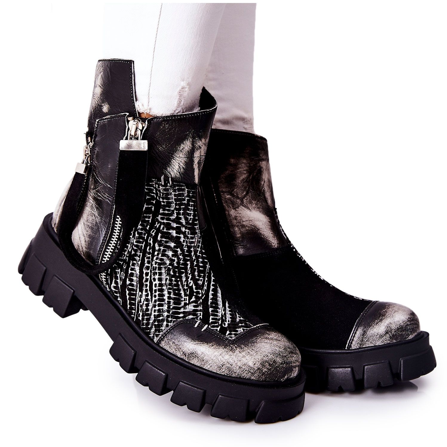 Sie bestehen aus hochwertigem Naturleder und Wildleder und garantieren Langlebigkeit und Tragekomfort. Feine Nähte und verschiedene Muster verleihen ihnen einen einzigartigen Charakter und heben sich von anderen Modellen ab. Der dekorative Riemen, der außen neben den Reißverschlüssen platziert ist, unterstreicht das moderne Design und die Attraktivität dieser Stiefel.