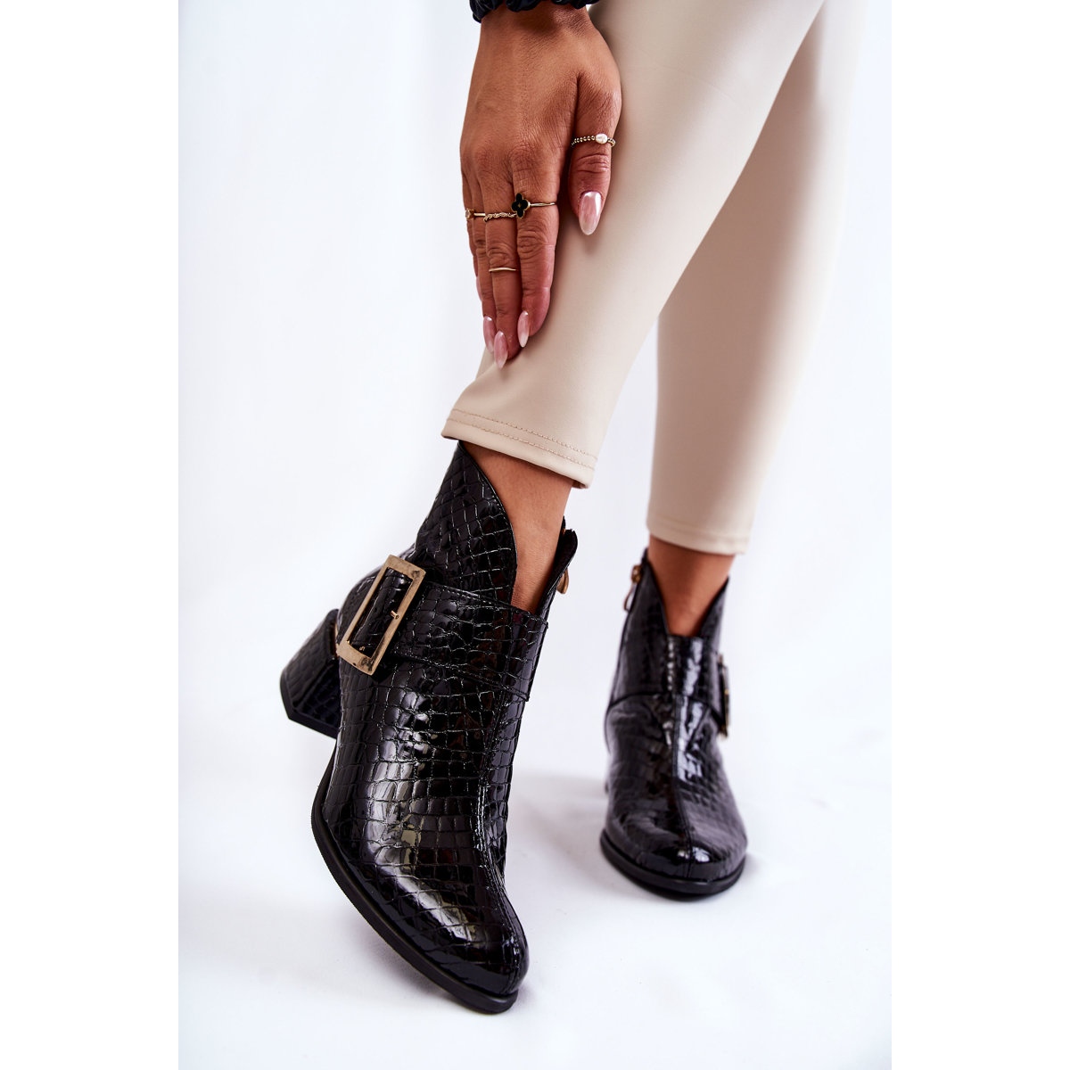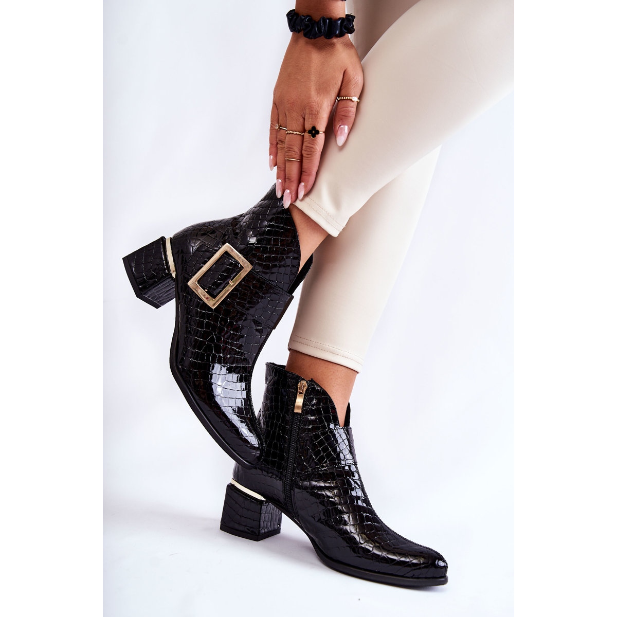 Details: PA2 Leder Booties Krokodil Reißverschluss Muster Schwarz Briana