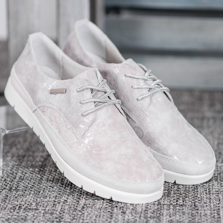 Dieses Modell passt perfekt zum lässigen Stil, ist perfekt für jeden Tag und lässt sich dank seiner universellen grauen Farbe problemlos mit verschiedenen Outfits kombinieren. Die Innenausstattung des Schuhs besteht aus einer Kombination aus Naturleder und Textilmaterial, was den Tragekomfort zusätzlich erhöht.
