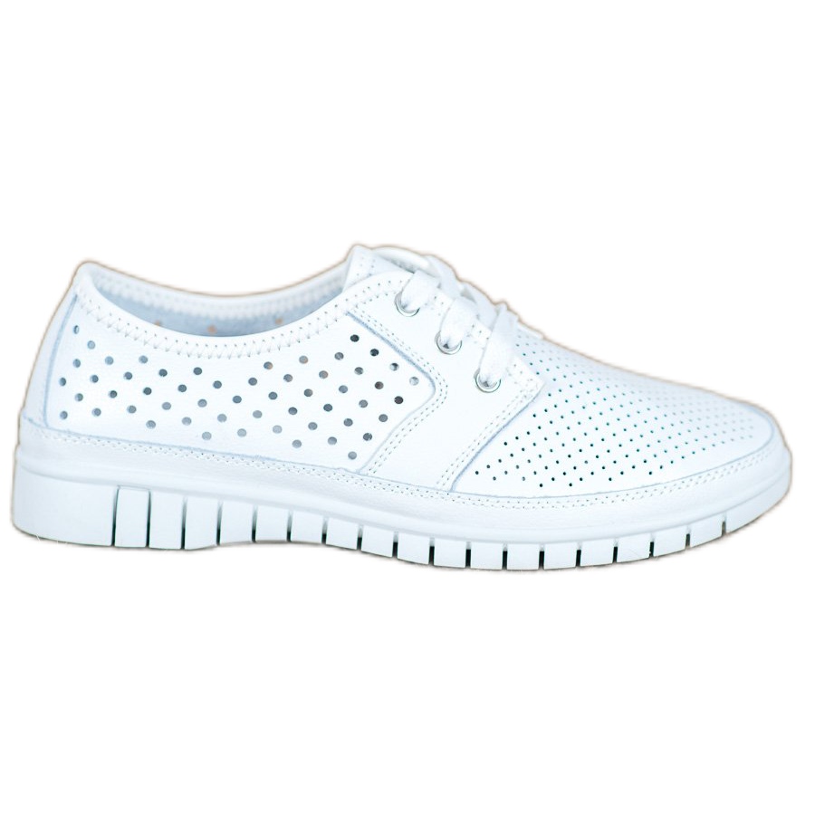Kylie Leder-Plateauschuhe in Weiß sind die perfekte Wahl für Frauen, die Wert auf Stil und Komfort legen. Diese aus hochwertigem Naturleder gefertigten Schuhe zeichnen sich durch ein durchbrochenes Obermaterial aus, das für hervorragende Atmungsaktivität und Tragekomfort sorgt.
