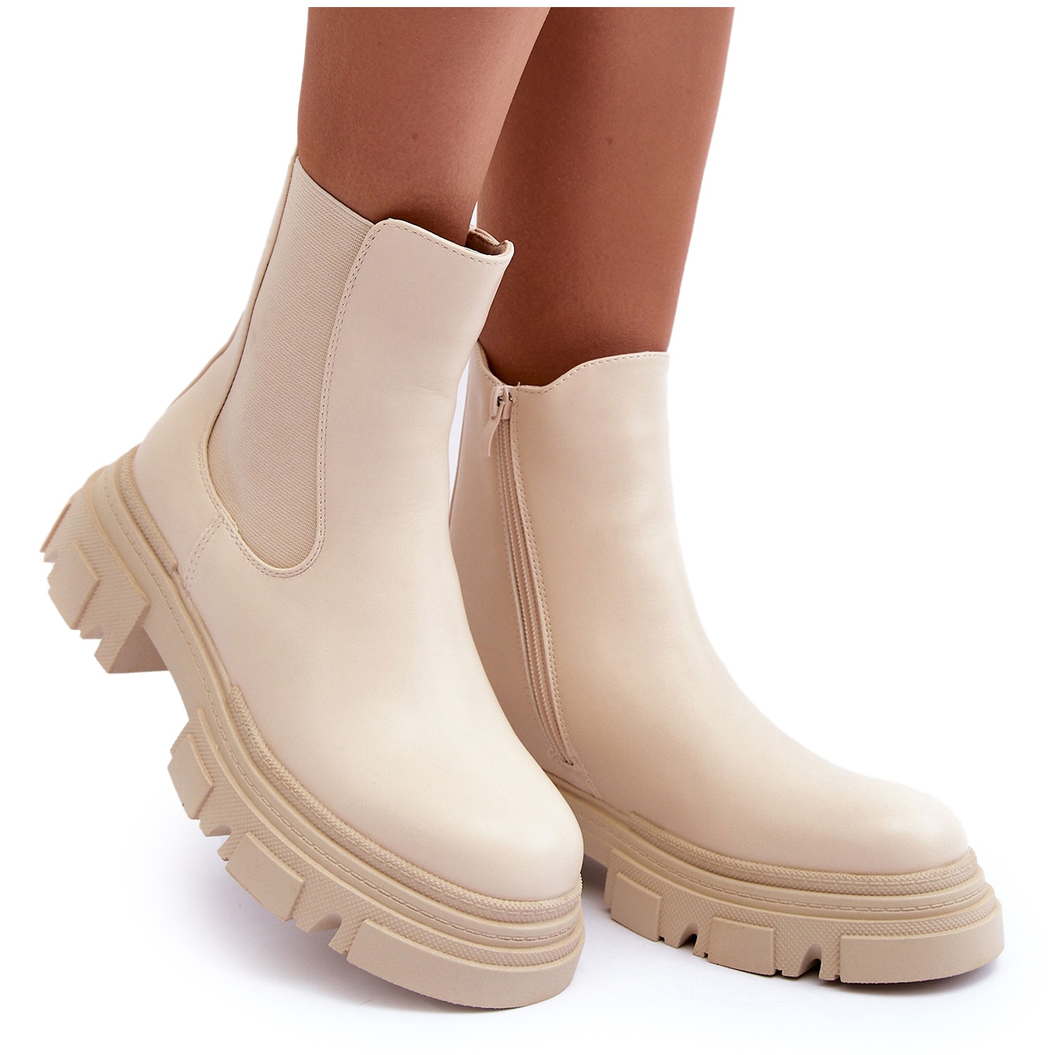 Inna marka Leder-Chelsea-Stiefel mit flachem Absatz und Plateau, hellbeige Solita
