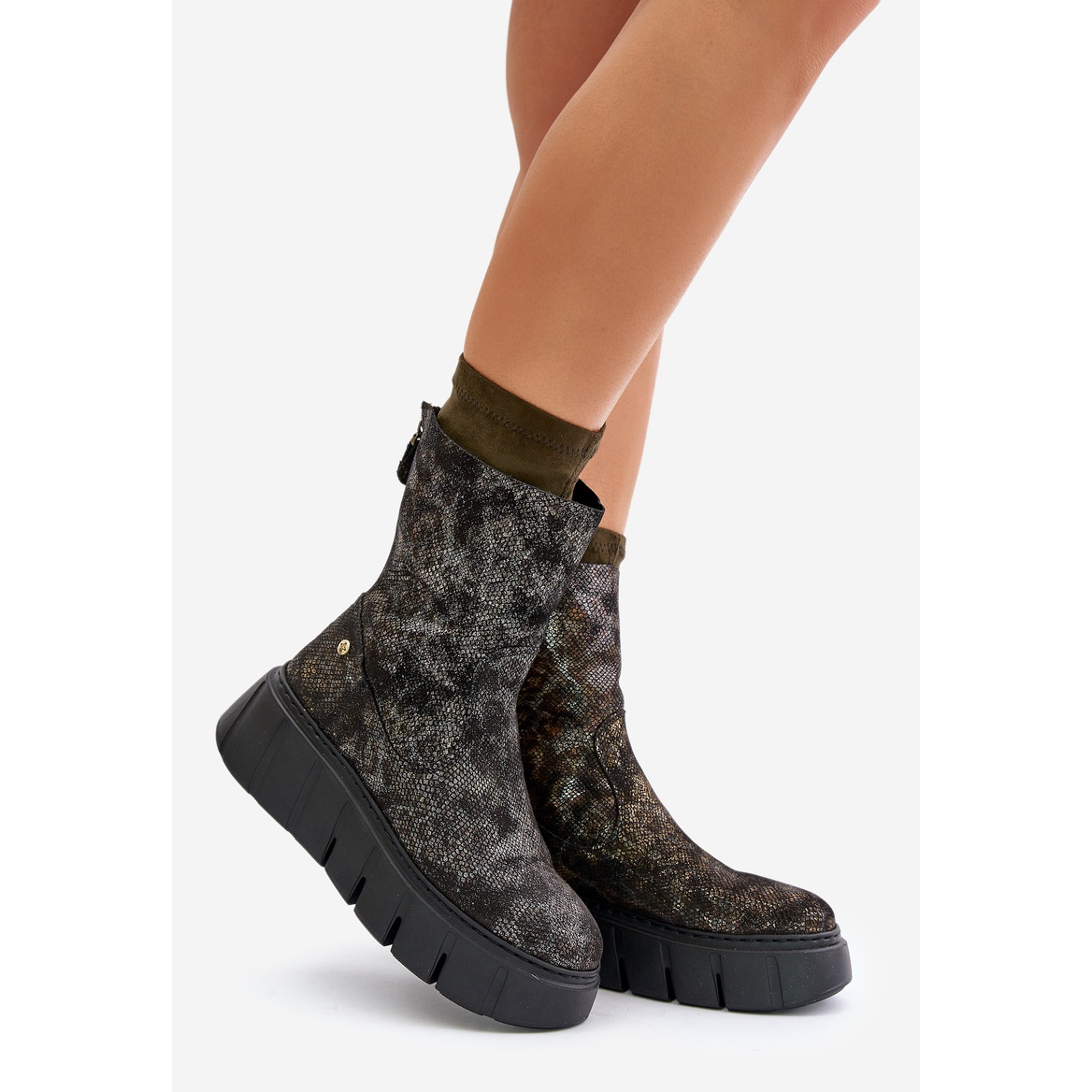 Maciejka Leder-Damenstiefel auf massivem Plateau Maciejka 06766-09 Khaki grün