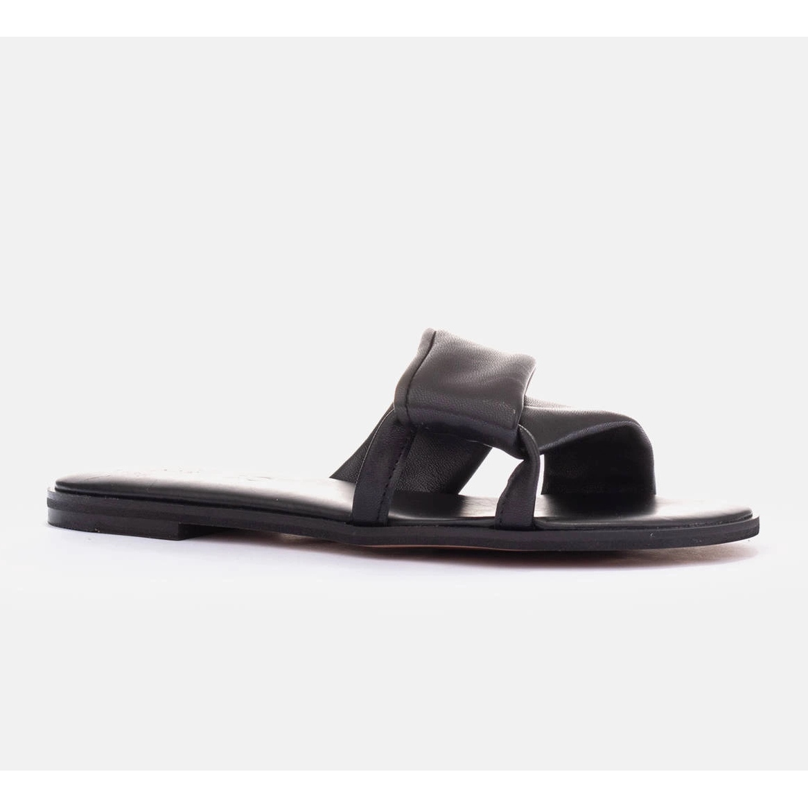 Details: Marco Shoes Leder-Flip-Flops auf flachem Boden schwarz