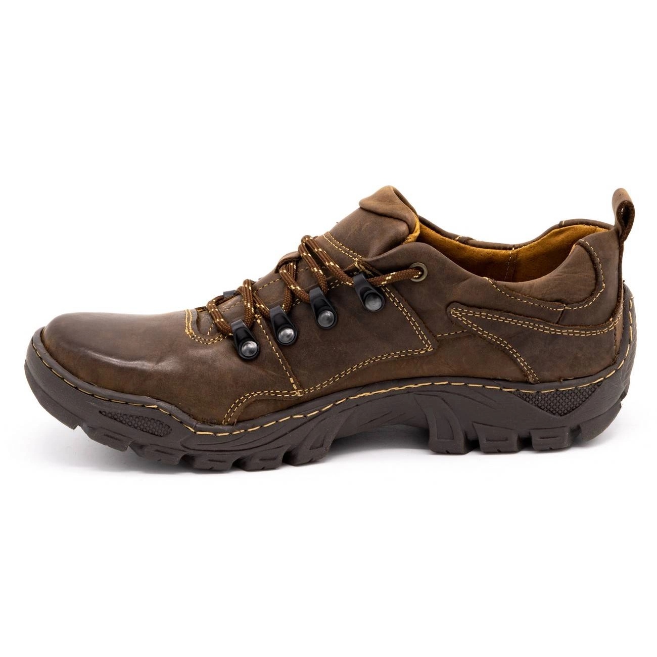 Klassische Trekkingschneider, die den Komfort des Alltags mit einem eleganten Aussehen kombinieren. Das Obermaterial besteht aus kornbasierter Getreideleder, die leicht zu versorgen sind, und der Einsatz aus natürlichen Leder sorgt auch für die richtige Luftzirkulation. Eine flexible, qualitativ hochwertige Sohle passt sich der Form des Fußes an, was während eines langen Verschleißes zu hohem Komfort führt. Das Modell ist ideal für lässige Stylisationen - es passt perfekt zu Jeans und Stadtoutfits.