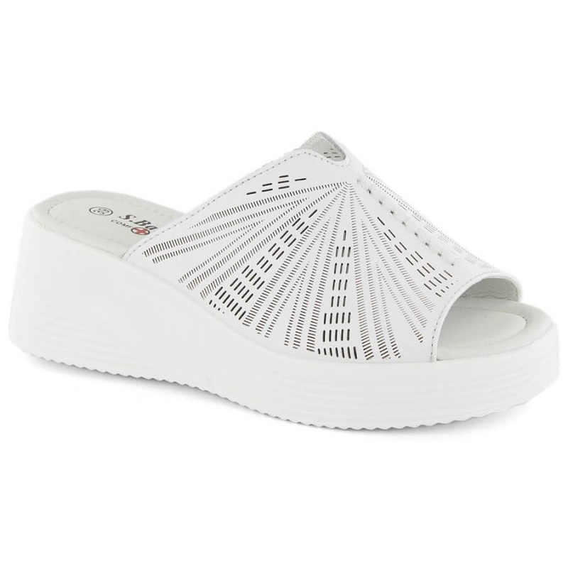 Lederkeile am S. Barski -Keil in OLI255A in White sind die perfekte Wahl für Frauen, die an Sommertagen Komfort mit einem modischen Stil kombinieren möchten. zehenstegsandalen aus hochwertigem natürlichen Leder zeichnen sich durch eine offene Konstruktion aus, die hervorragende Belüftung und Komfort des Tragens, nicht nur während der Spaziergänge, sondern auch täglich.