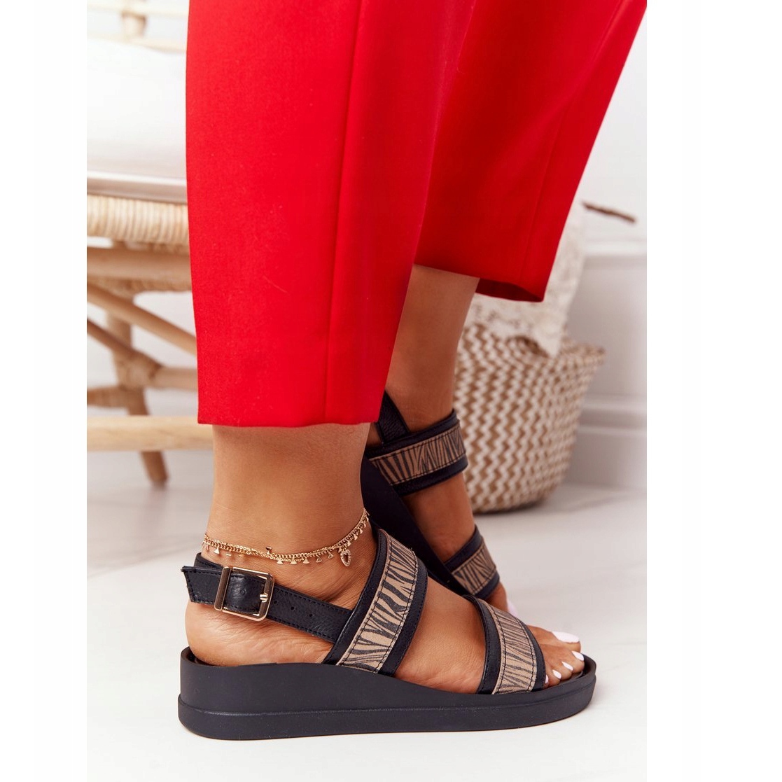 Ein klassischer Schnitt mit einem modischen Tiermotiv in einem Beige und einem schwarzen Ton funktioniert sowohl für den Alltag als auch für mehr Ausgangsstilisierungen - er verbindet sich gut mit Kleidern, Röcken und luftigen Hosen. Mit der Schnalle -Befestigung können Sie die Sandalen genau mit dem Fuß anpassen, und die offene Spitze fügt einen Sommercharakter hinzu.