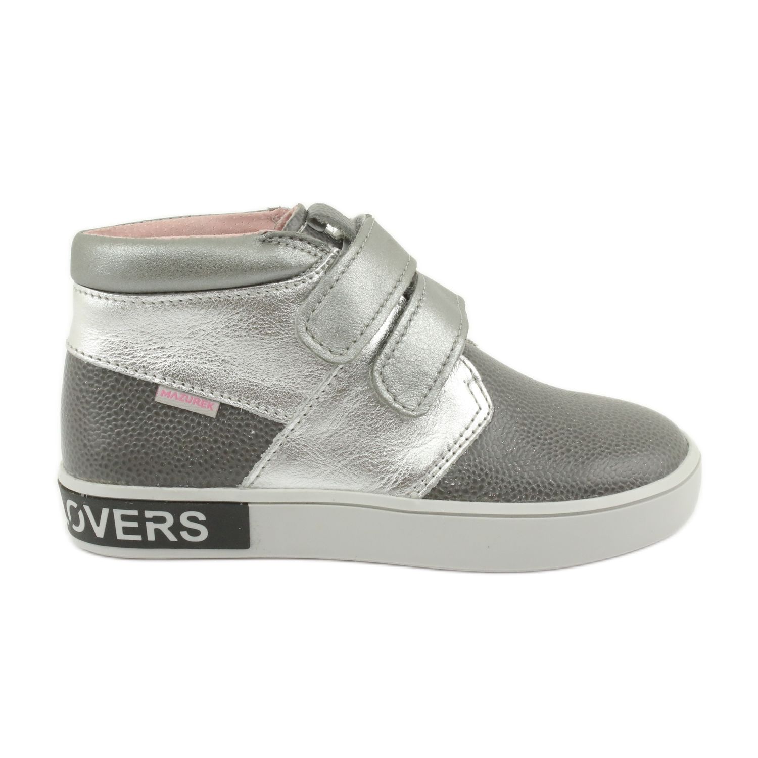 Mazurek Mazurek Leder -Kinderschuhe für Klettverschluss 1356 Grau/Silber