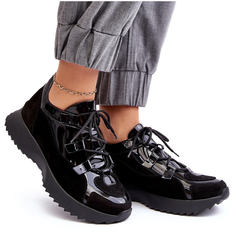 Details: Leder lackierte Frauen Sportschuhe M01/2 Zazoo Schwarz