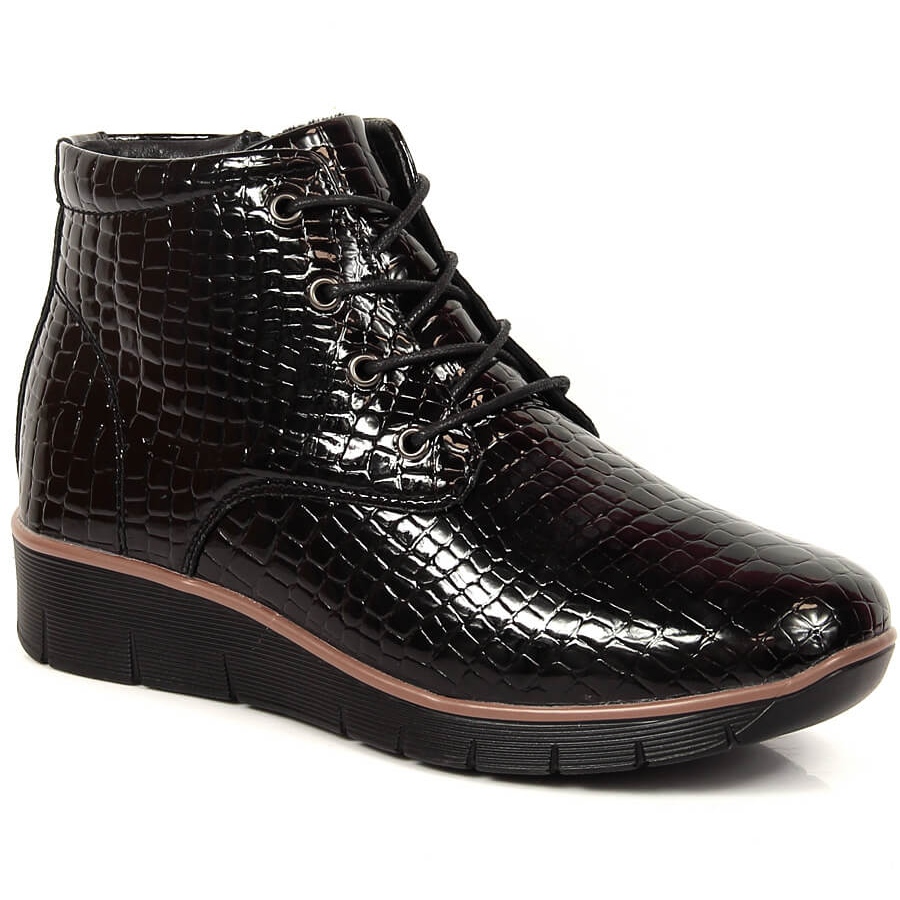Leder-Keilstiefel aus Lackleder mit isoliertem schwarzem Filippo sind die perfekte Wahl für aktive Frauen, die sowohl Wert auf Komfort als auch Eleganz legen. Aus hochwertigem Naturleder gefertigt, überzeugen diese Stiefeletten nicht nur durch ihr modisches Aussehen, sondern auch durch ihre Praktikabilität.