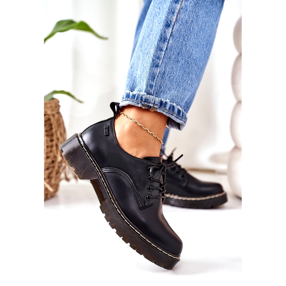 Leder-Oxford-Schuhe Big Star II274107 Schwarz sind ein ideales Angebot für Frauen, die Wert auf Eleganz und Tragekomfort legen. Die polnische Marke BIG STAR ist für ihren originellen Stil und ihre hochwertigen Produkte bekannt, was durch das Modell dieser Schuhe bestätigt wird.