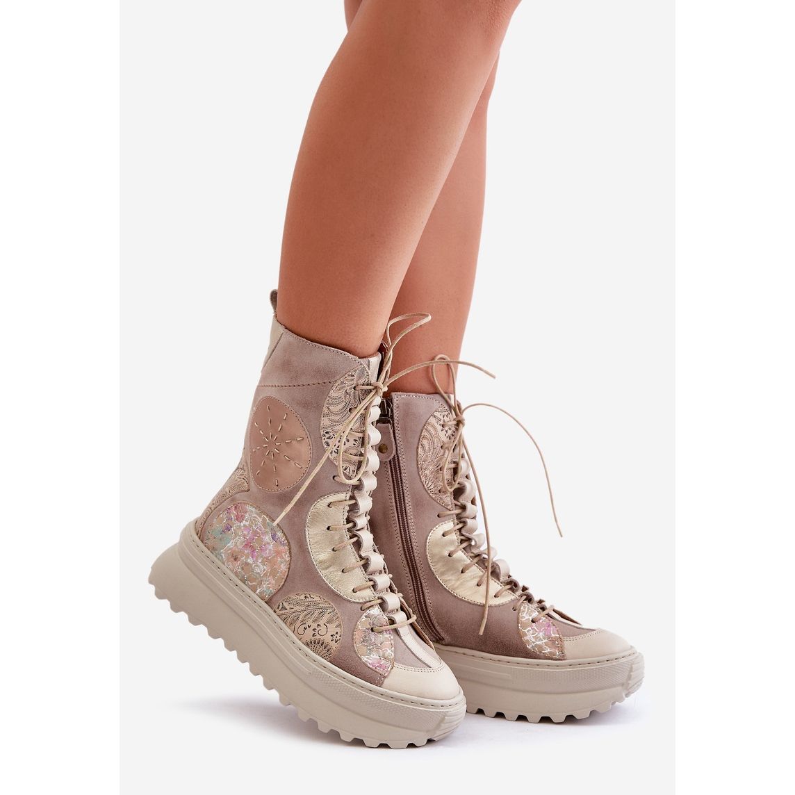 Maciejka Leder-Wildlederstiefel auf der warmen Plattform Maciejka 06565-04 Beige