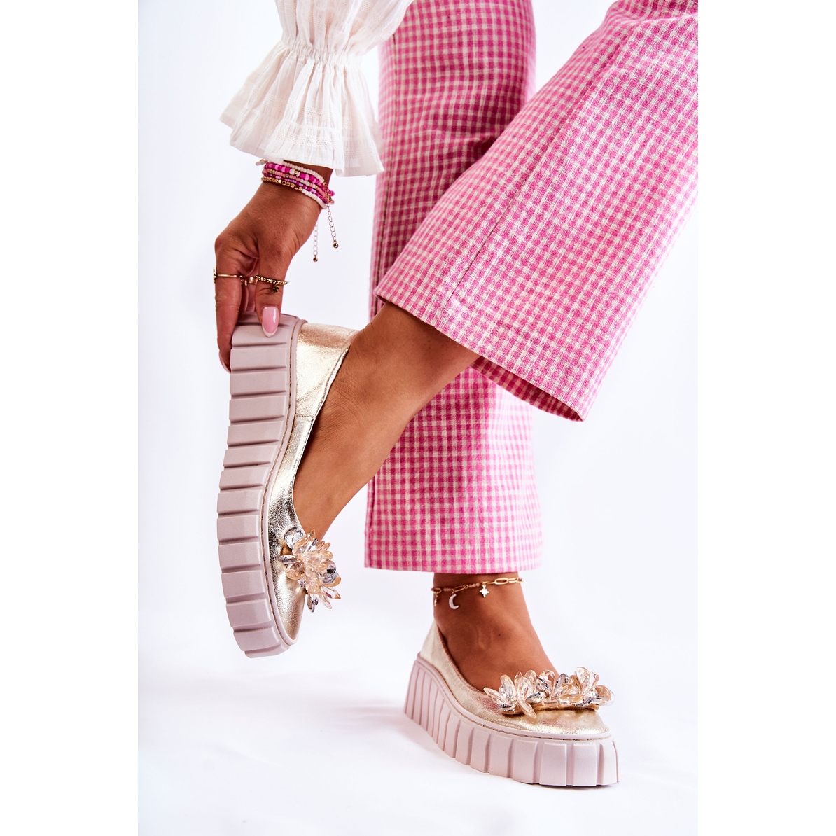 PA2 Lederballerinas auf Plateausohle mit goldener Ladette-Verzierung sind ein Synonym für Eleganz gepaart mit Zweckmäßigkeit. Sie sind eine ausgezeichnete Wahl für Frauen, die Wert auf Komfort legen, ohne auf ein modisches Aussehen zu verzichten. Unabhängig vom Anlass werden diese Ballerinas mit Sicherheit eine Dekoration und Ergänzung jeder Garderobe sein.