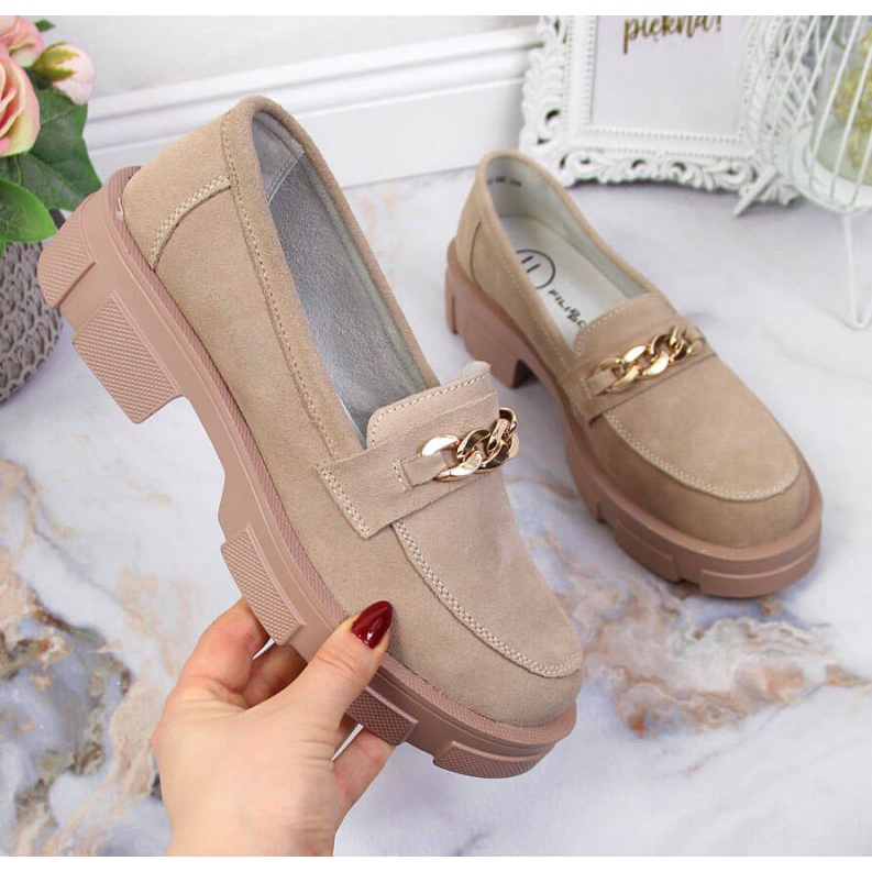 Inna marka Lederhalbschuhe mit Kette Filippo W PAW252B beige