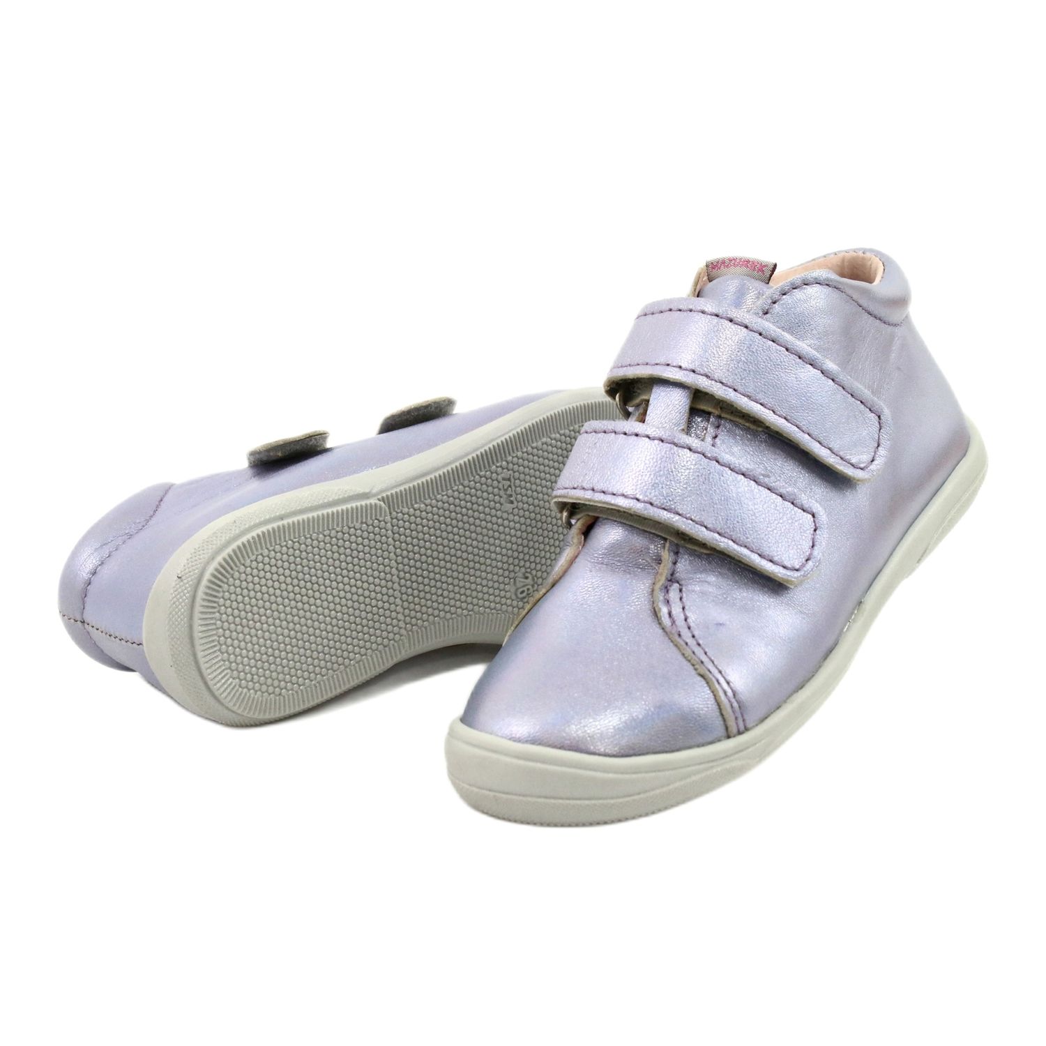 Dank der natürlichen Haut und der profilierten Einsatz sind die Schuhe luftig und bequem für die zarten Füße des Kindes. Die versteifte Ferse und die Nicht -Slip -Sohle garantieren Stabilität beim Gehen und Spielen, und die praktische Klettverschluss erleichtert das Anziehen. Das holographische Finish fügt einen mädchenhaften Charakter hinzu und lässt die Schuhe unter anderen Modellen hervorheben.