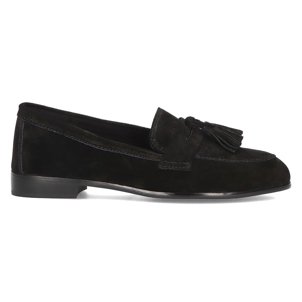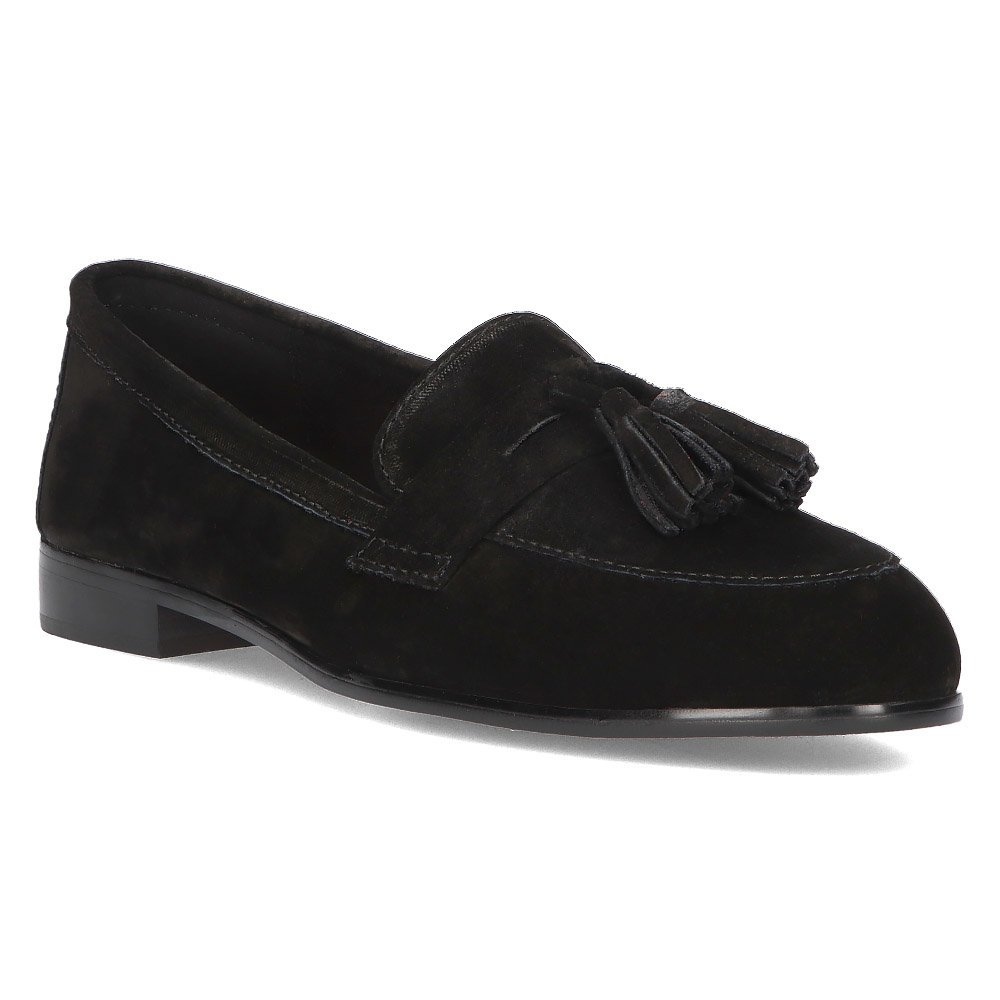 Mokassins haben eine runde Spitze und einen flachen Absatz, was sie zu einer perfekten Lösung für verschiedene Anlässe macht – von der Arbeit bis hin zu gesellschaftlichen Zusammenkünften. Sie zeichnen sich durch ein minimalistisches Design in klassischem Schwarz aus, wodurch sie sich leicht mit vielen Stilrichtungen kombinieren lassen. Die Fransen sorgen für etwas Originalität und femininen Charme.