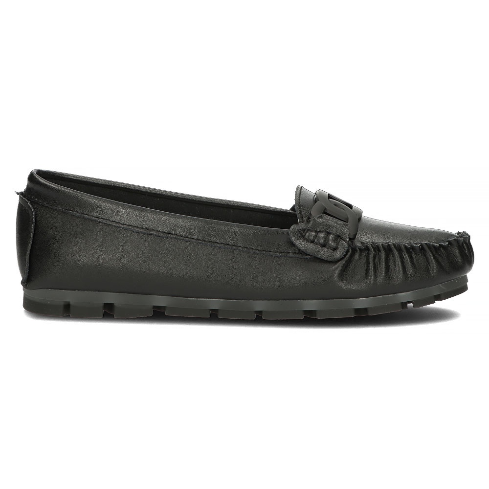 Die Mokassins zeichnen sich durch eine runde Spitze und einen praktischen Slip-On-Verschluss aus, der den Kauf und das tägliche Tragen bequem macht. Naturleder, aus dem sowohl der äußere Teil des Schuhs als auch das Futter bestehen, garantiert eine ausreichende Luftzirkulation und Komfort für die Füße. Ein zusätzlicher Vorteil ist die klassische Kunststoffsohle, die für Stabilität und Langlebigkeit sorgt.