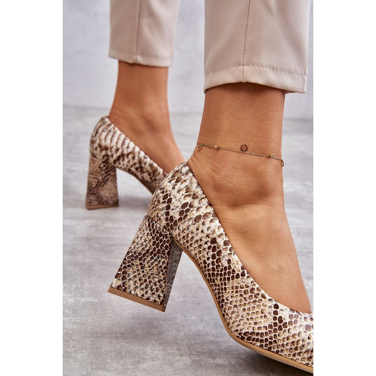 Elegante Lederpumps mit Schlangenmuster Lewski Shoes 3277 Beige und Gold – Synonym für Stil und Komfort