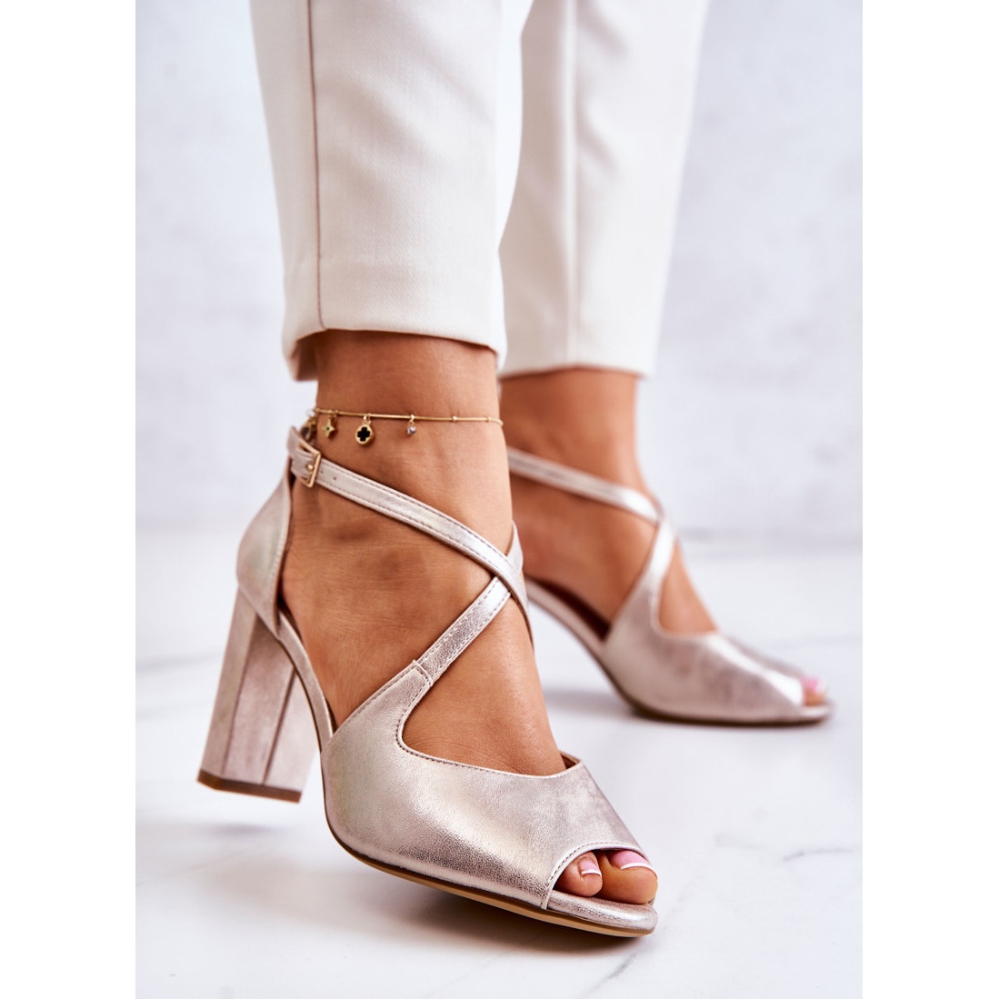 Die Sandalen zeichnen sich durch einen 8,5 cm hohen Absatz aus, der Stabilität und Tragekomfort garantiert. Verstellbare Riemen mit praktischem Schnallenverschluss sorgen für eine perfekte Passform, offene Zehen und eine versteifte Ferse sorgen für einen klassischen Charakter.
