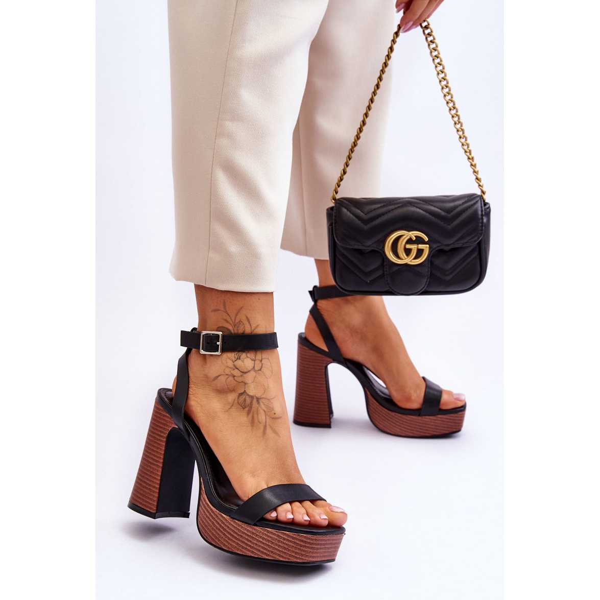 Inna marka Ledersandalen auf einer klobigen schwarzen Marina-Plattform