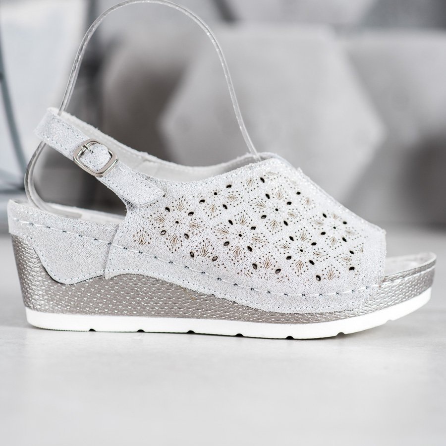 Die aus hochwertigem Naturleder gefertigten Sandalen sind außergewöhnlich langlebig und bequem zu tragen. Innovatives Design mit durchbrochenen Details und dezentem Glitzer verleiht jedem damit zusammengestellten Outfit einen dezenten Glanz. Die Kunststoffsohle mit Profil bietet ausreichend Halt und ist daher praktisch für Sommerspaziergänge.