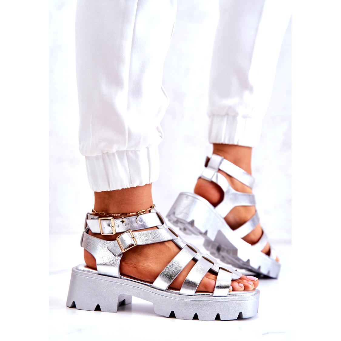 PS1 PS1 Ledersandalen mit Streifen Silber Minorit silber-