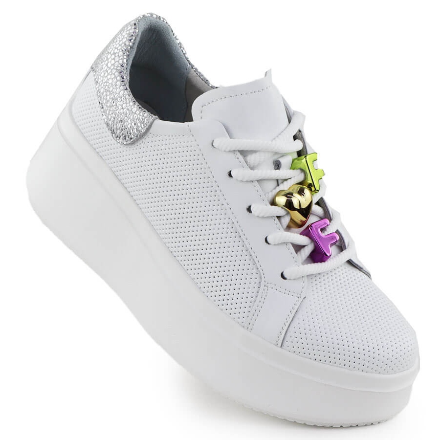 Details: Lederschuhe auf einer dicken perforierten Sohle weiße Filippo DP6793