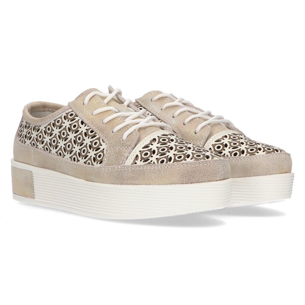 Die aus hochwertigem Naturleder gefertigten Schuhe zeichnen sich durch eine runde Spitze und einen Schnürverschluss aus, der eine perfekte Passform am Fuß ermöglicht. Die goldene Farbe hebt die Schuhe von den anderen ab und macht sie zu einer perfekten Wahl sowohl für alltägliche Ausflüge als auch für anspruchsvollere Anlässe.
