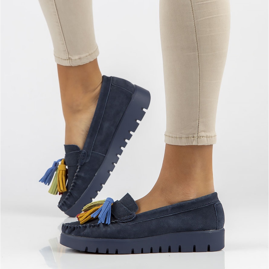 Die Farbe Marineblau ist ein Klassiker, der problemlos zu anderen Elementen der Garderobe passt. Darüber hinaus macht das natürliche Obermaterial die Schuhe nicht nur ästhetisch, sondern auch langlebig.
