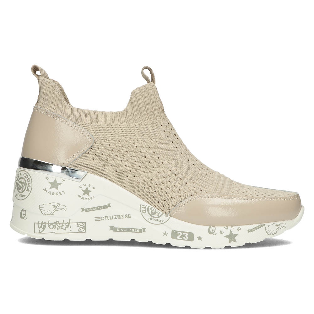 Sie bestehen aus atmungsaktivem Material und garantieren eine hervorragende Belüftung der Füße, was sie perfekt für den täglichen Gebrauch macht. Ihr klassisches Design ohne Muster passt perfekt zu einer Vielzahl von Outfits, von lässig bis elegant. Eine Sohle aus Kunststoff mit einer Plateauhöhe von 2,5 cm und einem Keilabsatz von 6,5 cm Höhe sorgen für Stabilität und Komfort auch bei längerem Tragen.