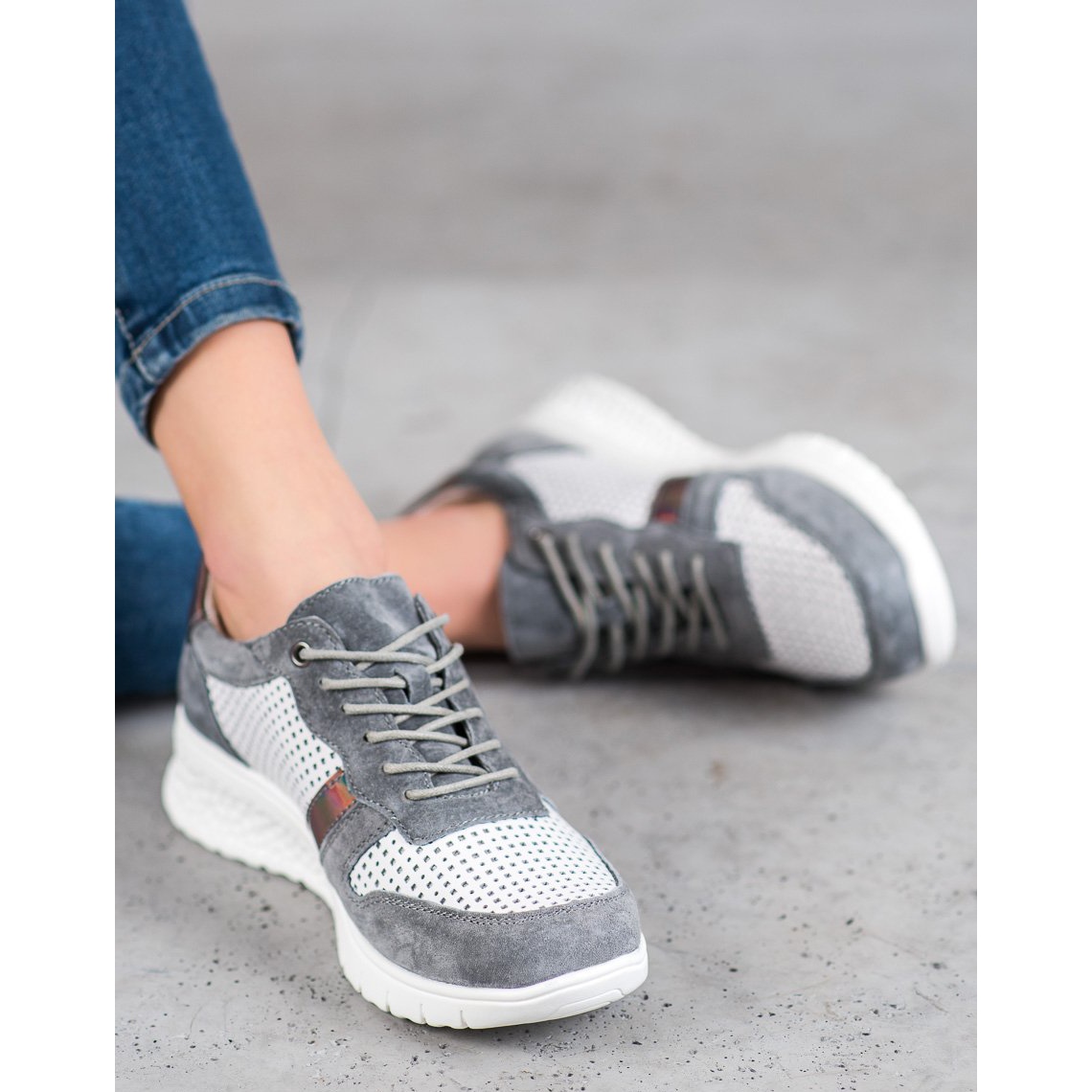 Entdecken Sie einzigartigen Stil und Komfort mit Filippo-Schuhen in einer modischen weißen und grauen Version! Diese äußerst modischen Damenschuhe vereinen modernes Design und Funktionalität. Holografische Einsätze verleihen ihnen einen einzigartigen Charakter, der die Aufmerksamkeit auf sich zieht, und das durchbrochene Muster sorgt für einen leichten und luftigen Look.