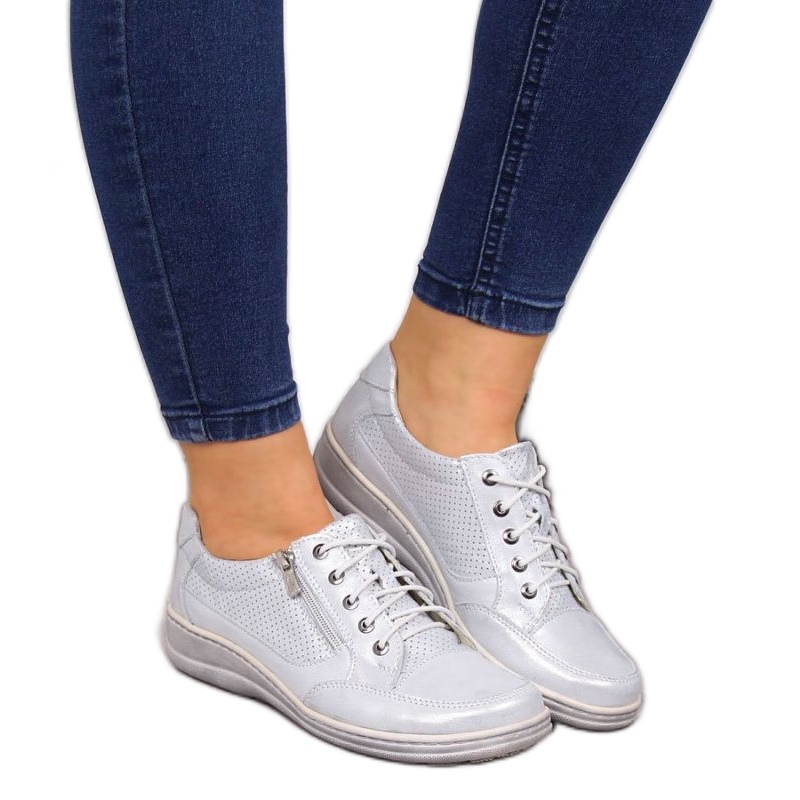 Entdecken Sie einzigartigen Stil und unvergleichlichen Komfort mit den silbernen Lederschuhen Helios W H357C mit Reißverschluss. Diese eleganten, in Polen hergestellten Schuhe vereinen modernes Design und Zweckmäßigkeit, was sie zur idealen Wahl für Frauen macht, die Wert auf Mode und Komfort legen.