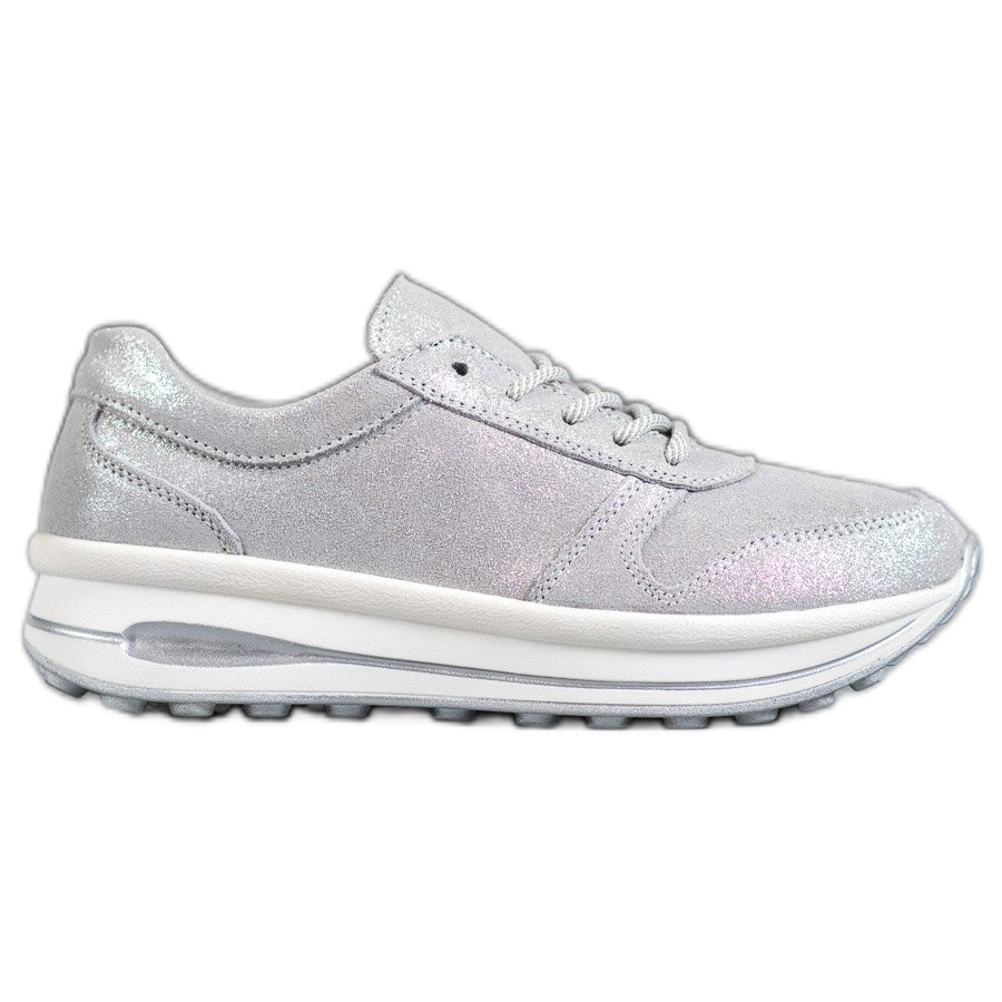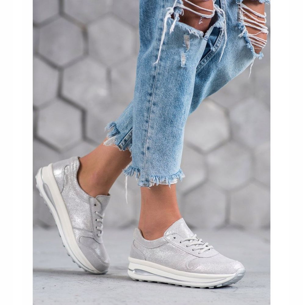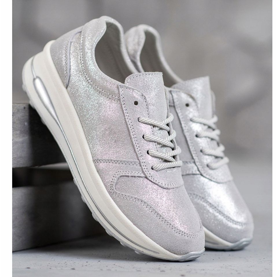 Wir laden Sie ein, VINCEZA Leder-Sportschuhe mit Glitzer in einem eleganten Grauton zu entdecken. Diese modischen Sneaker sind eine perfekte Kombination aus Klassik und Moderne und werden jede Frau ansprechen, die Wert auf Komfort und Stil legt.